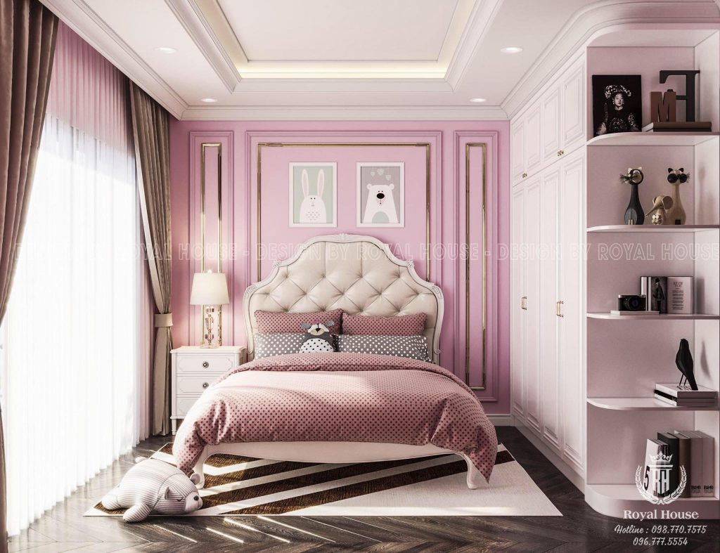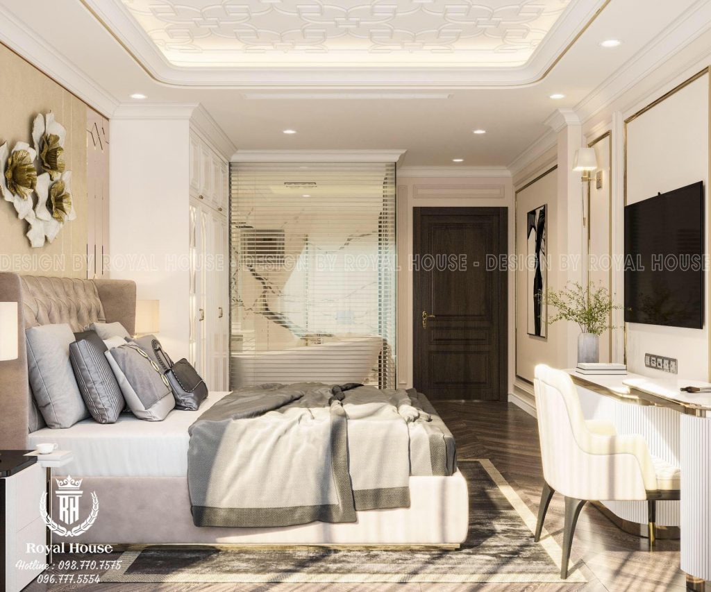 Không gian phòng ngủ sang trọng, kết hợp hệ thống rèm tự động, điều khiển điều hòa